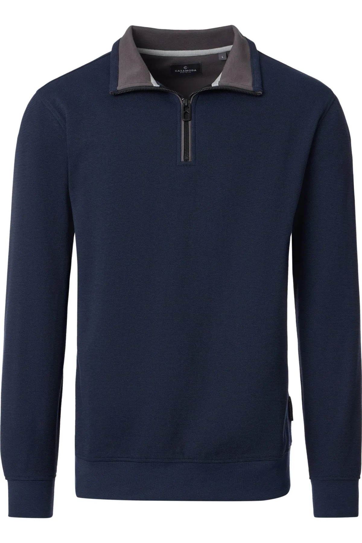 Casa Moda Half-Zip Sweater blauw, Effen Prijzen