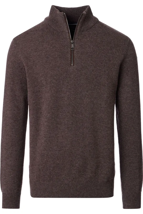 Casa Moda Half-Zip Sweater bruin, Effen