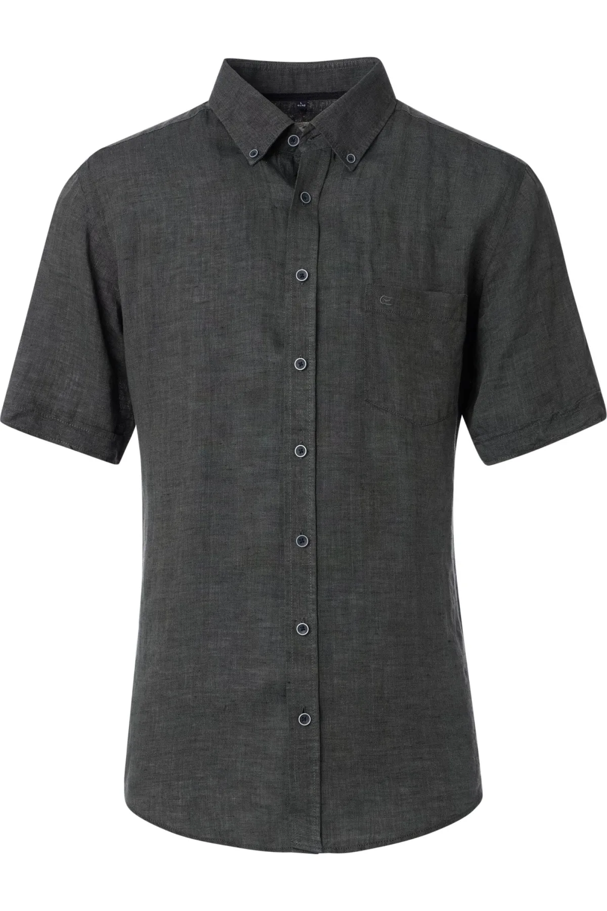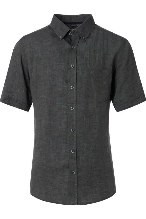 Korte mouw, 100% Linnen, Button-Down kraag Linnen, Met borstzak, 30 graden