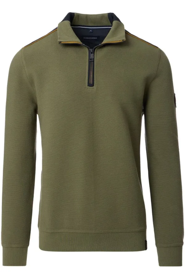 Casa Moda Modern Fit Half-Zip Sweater groen, Effen Prijzen