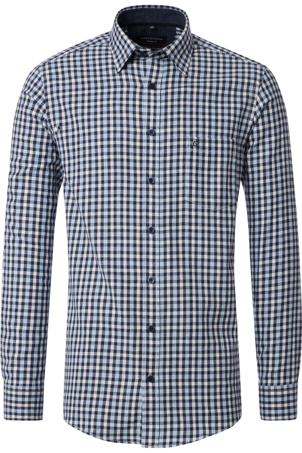 CASA MODA Sport casual fit overhemd flanel blauw geruit Strijkvriendelijk...