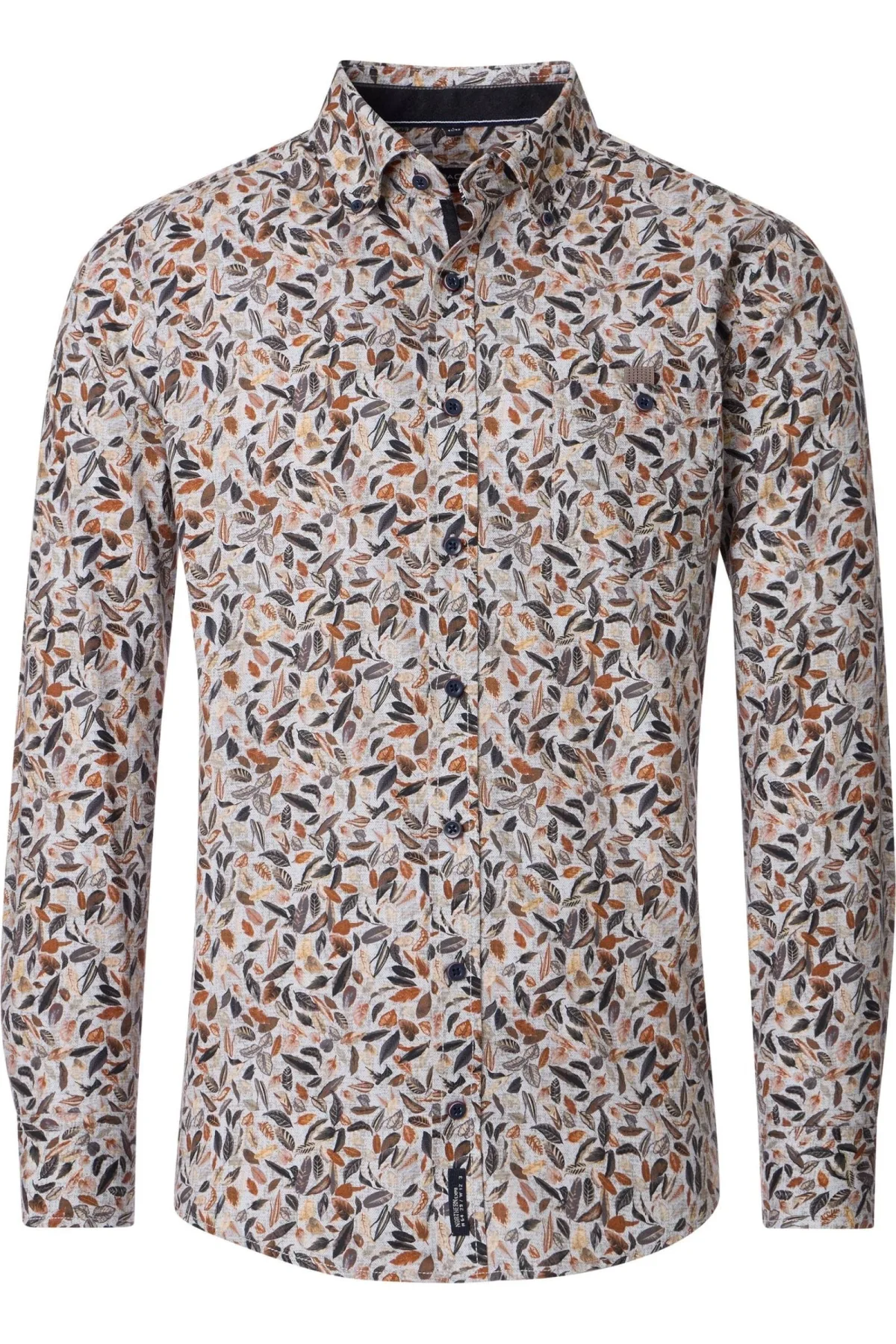 Casa Moda overhemd bruin geprint katoen button down wijde fit