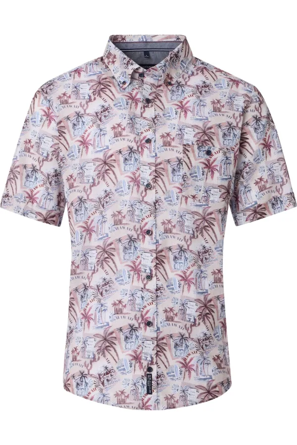 Dit korte mouwen overhemd van Casa Moda is perfect voor elke gelegenheid. Gemaakt van 100% katoen voor optimaal comfort en voorzien van een palmboom patroon. Stijlvol en ademend, ideaal voor zowel werk als vrije tijd.