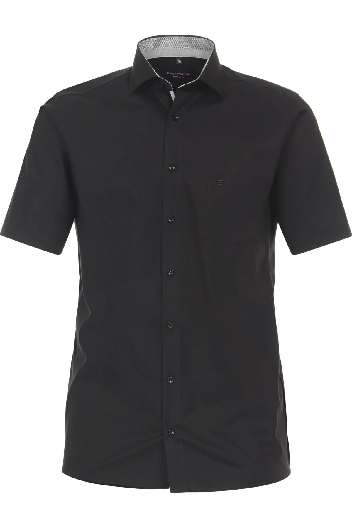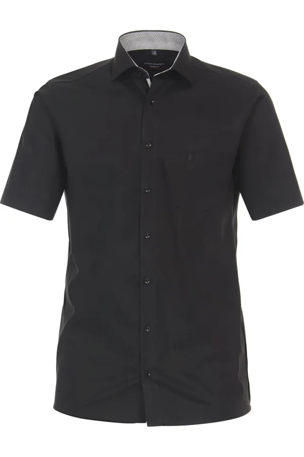 CASA MODA modern fit overhemd korte mouw popeline zwart Strijkvrij...