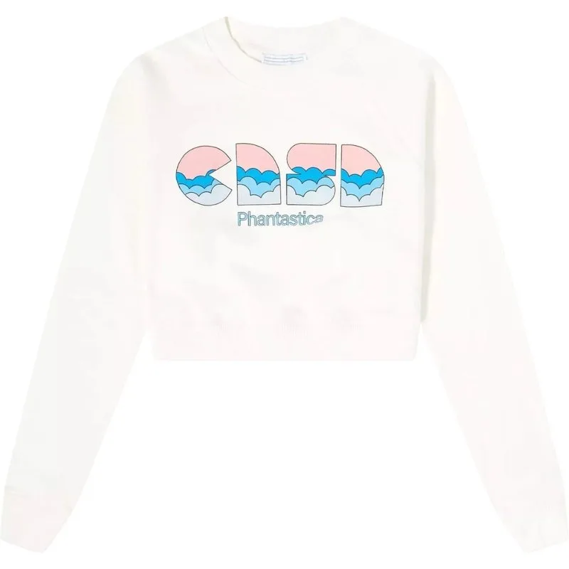 Casablanca Casa Clouds Cropped Witte Sweater Met Zeefdruk