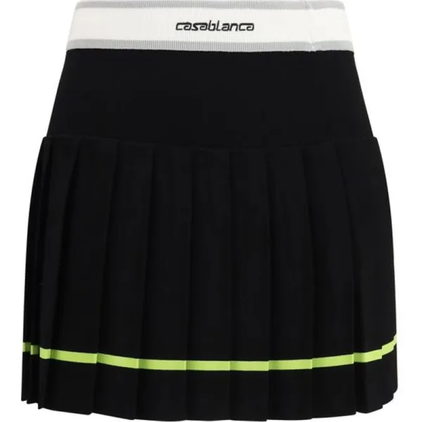 De gestreepte geplooide rok van Casablanca is een minirok met een gestructureerde silhouet die de verfijnde, atelier-geïnspireerde benadering van sportkleding van het huis weerspiegelt. Gemaakt van viscose stof, heeft het een elastische tailleband met het Casablanca-logo, een gladde yoke en een geplooid paneel dat is afgewerkt met een gele strook aan de zoom voor een grafische, onderscheidende uitstraling. Seizoen: SS26 Pasvorm: Slim Samenstelling: 83% Viscose 17% Polyester