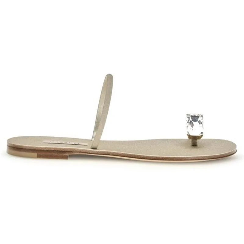 Casadei Gouden Kalfsleren Bos Taurus Platte Sandalen Prijzen