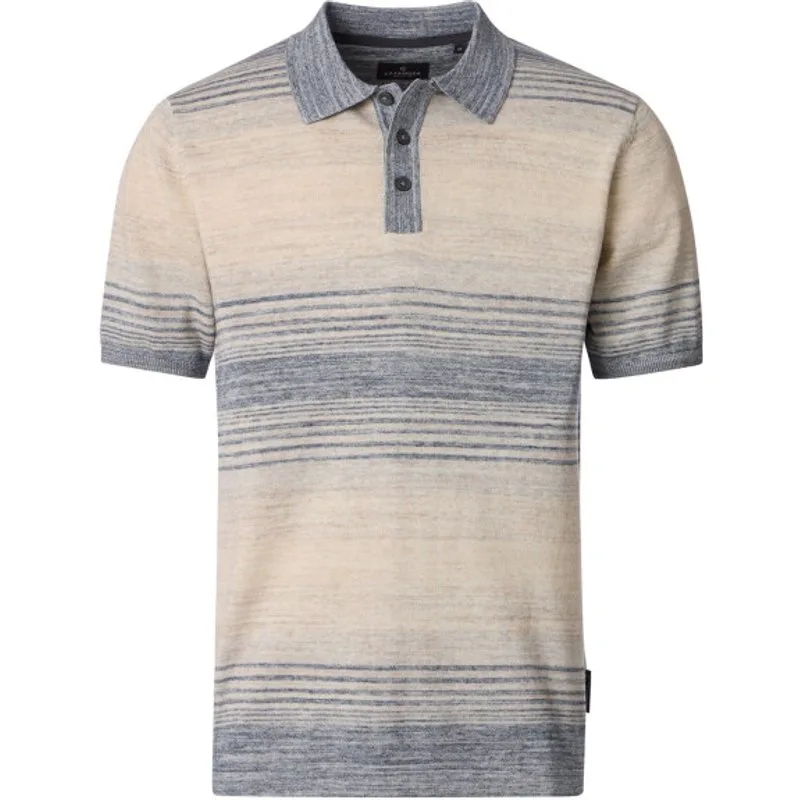 Knitted katoenen heren poloshirt met kort mouwen van het merk Casa Moda. Deze gebreide polo heeft een sportief streep dessin en een knoopsluiting. Regular fit 100% Katoen Kleurnummer: 668