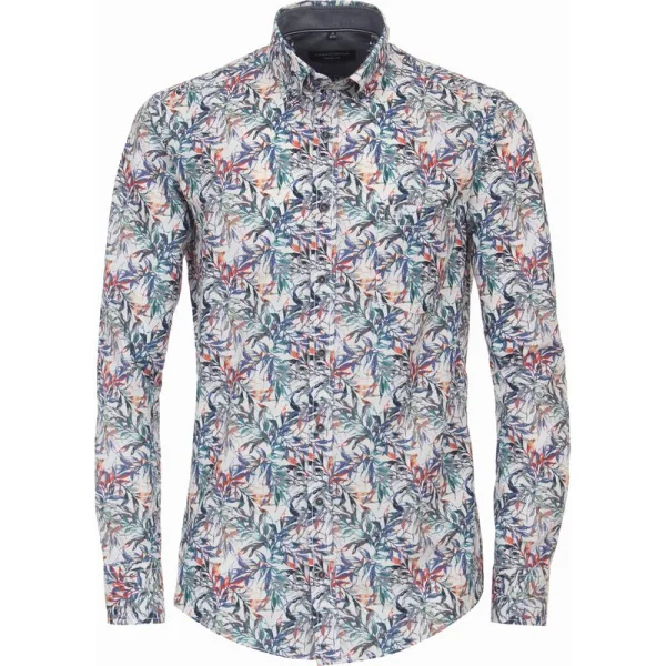 Heren overhemd met een zomers dessin van het merk Casa Moda. Regular fit Borstzakje 100% Katoen Kleurnummer: 100