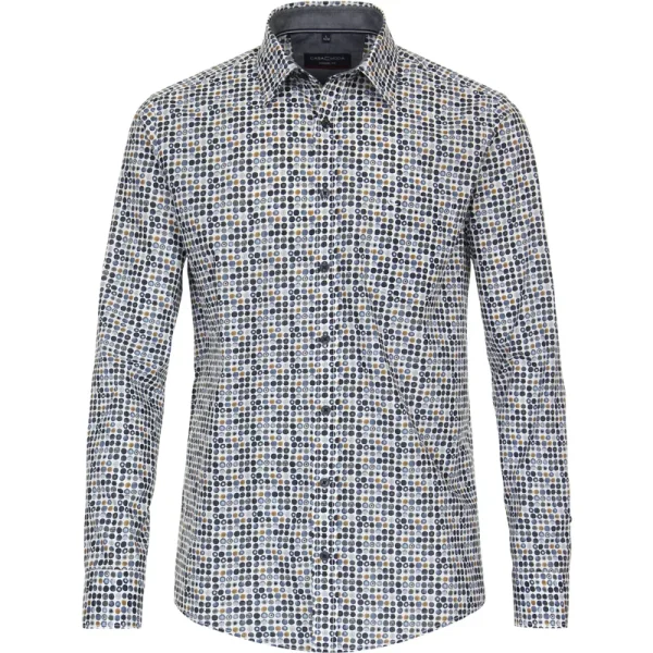 Ontdek het heren overhemd van Casa Moda met lange mouwen en blauwe accenten. Gemaakt van 100% katoen, biedt dit overhemd comfort en stijl in één. Perfect voor elke gelegenheid.