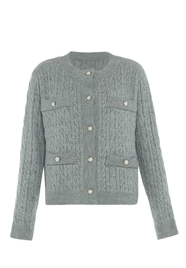 Design: Vlecht brei; Type sluiting: Knoopsluiting; Materiaal: Knitwear; Halstype: Ronde hals; Motief: Mélange; Extra's: Fully fashioned; Pasvorm: Normale pasvorm; Armlengte: Lange mouw; Lengte: Normale lengte