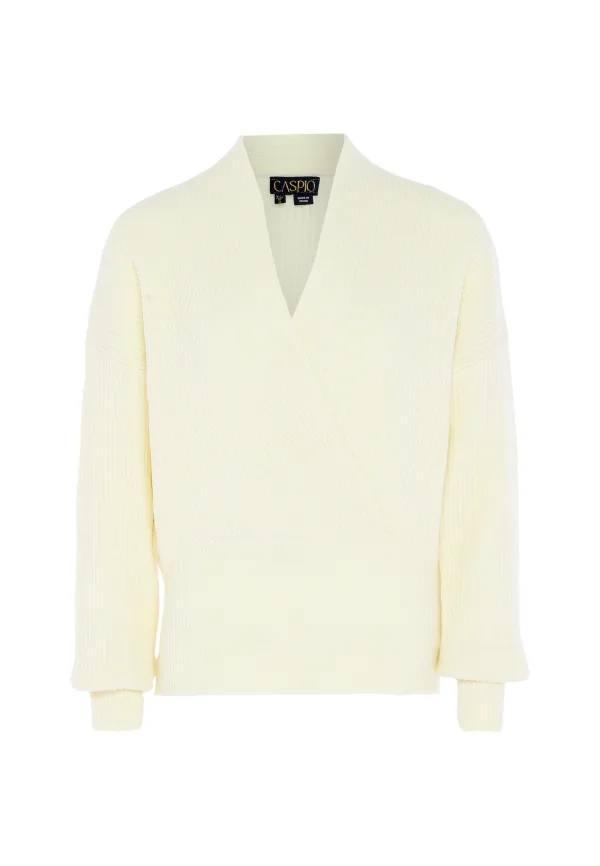 Design: Geribd ceintuurtje; Materiaal: Knitwear; Halstype: V-hals; Motief: Effen; Details: Wikkel design; Extra's: Voelt zacht aan; Pasvorm: Losse pasvorm; Armlengte: Lange mouw; Lengte: Normale lengte