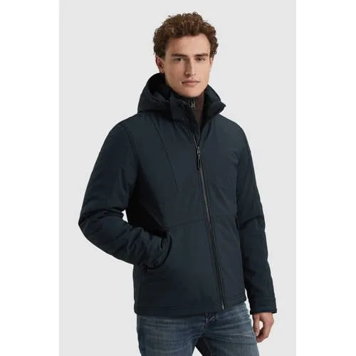 Deze Cast Iron jas heeft een afneembare capuchon en een korte mouwlengte. De jas is gevoerd, waterafstotend en sluit met een rits met windvanger. Er zijn zakken voor en binnenzakken.