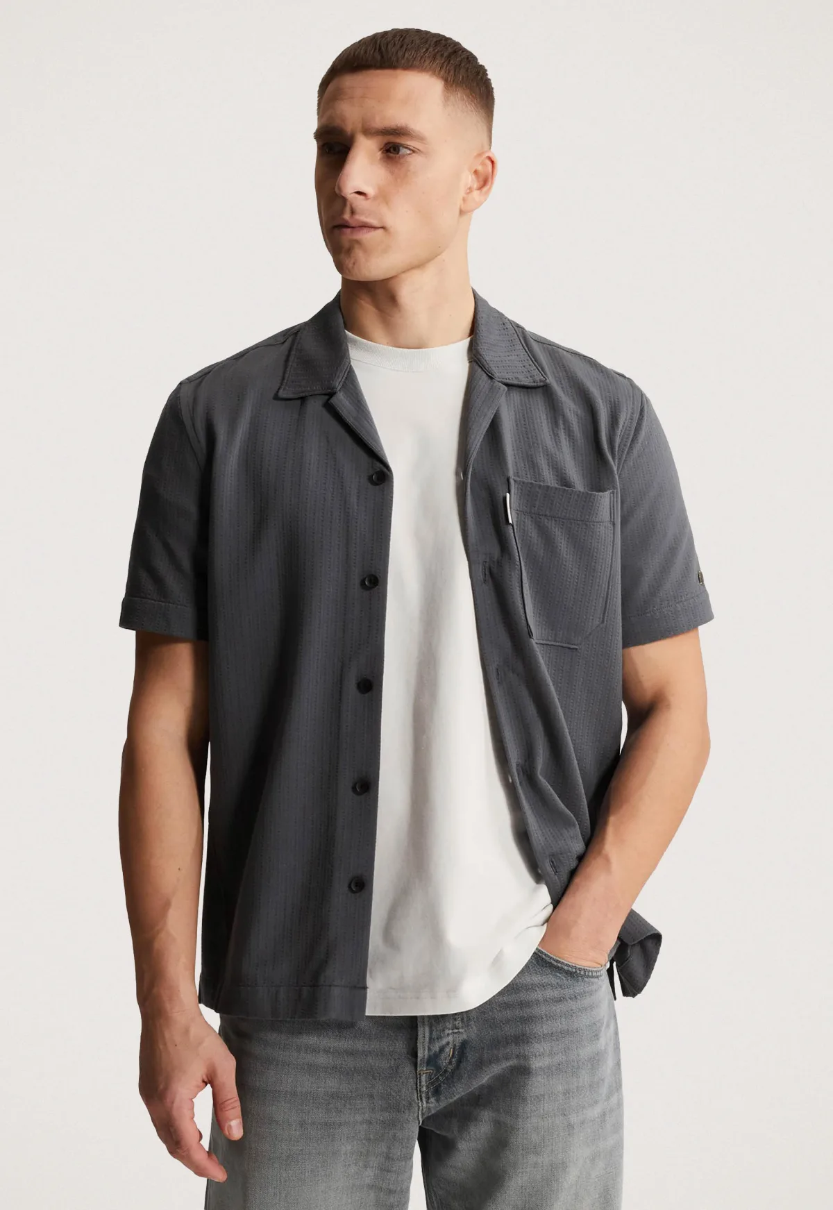 Dit is het CSIS2604266 Tech Structure Overhemd van het merk Cast Iron. Dit overhemd heeft een moderne pasvorm en is uitgevoerd in een comfortabele jersey-stof. Het design omvat korte mouwen, een platte kraag en een praktische borstzak, wat zorgt voor een cleane en tijdloze uitstraling.