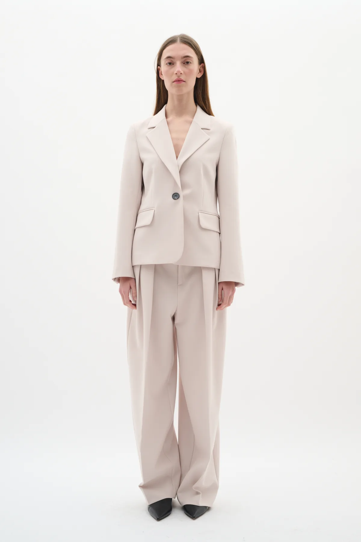 Wijde pantalon met comfortabele pasvorm voor zowel zakelijke als casual outfits. Voorzien van plooien, normale taille en riemlussen voor veelzijdige styling.