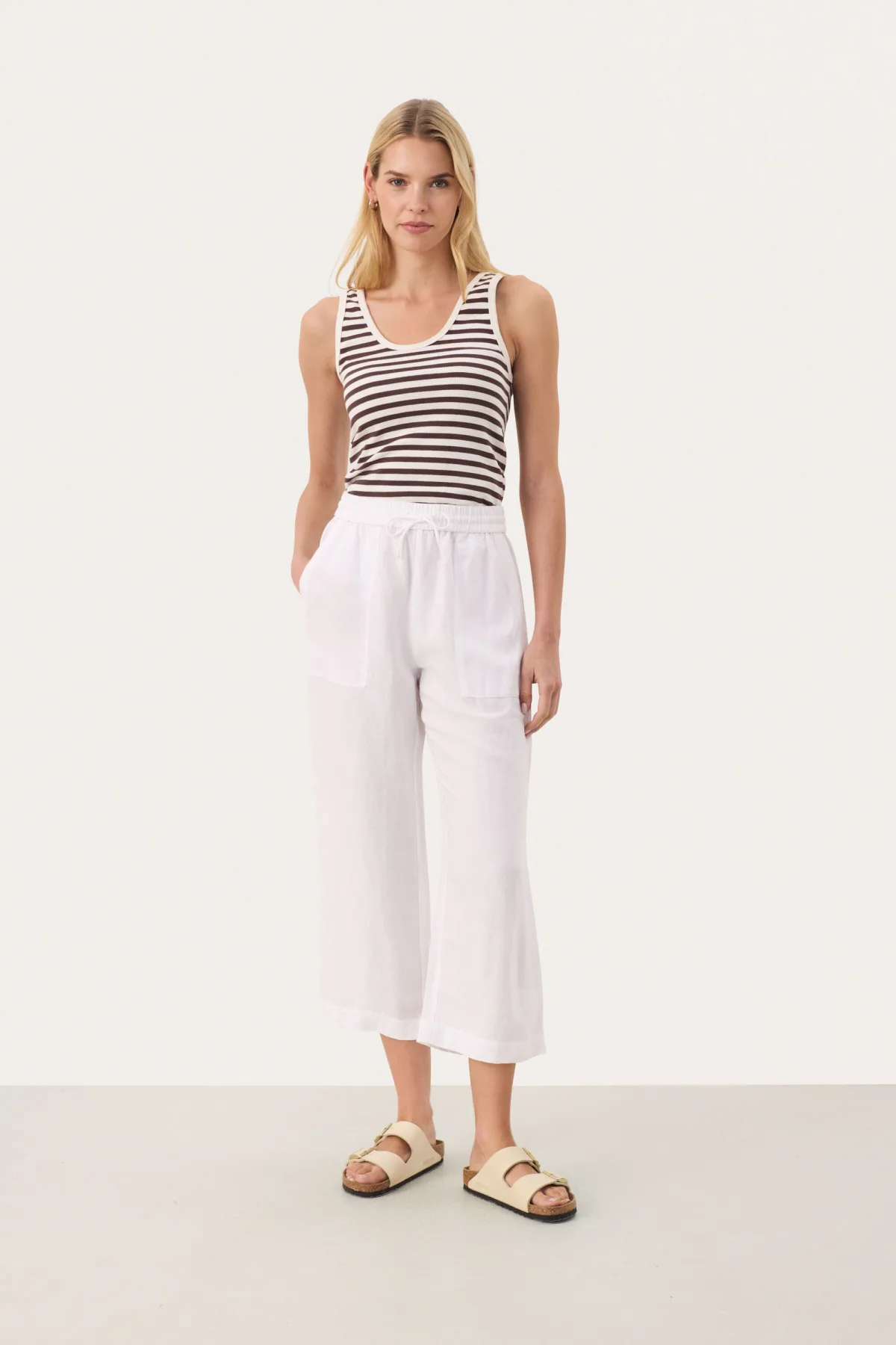 Easy fit,Comfort taile,Lengte net boven de enkel,Relaxed Fijne was 30°, niet bleken, niet in de droger drogen, Druipnat ophangen in de schaduw, koud strijken max. 110° C, 50% Linnen,50% Viscose (LENZING™ ECOVERO™)