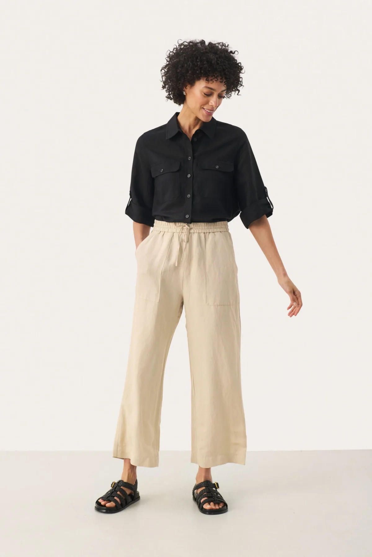 Easy fit,Comfort taile,Lengte net boven de enkel,Relaxed Fijne was 30°, niet bleken, niet in de droger drogen, Druipnat ophangen in de schaduw, koud strijken max. 110° C, Droogreiniging 50% Linnen,50% Viscose (LENZING™ ECOVERO™)