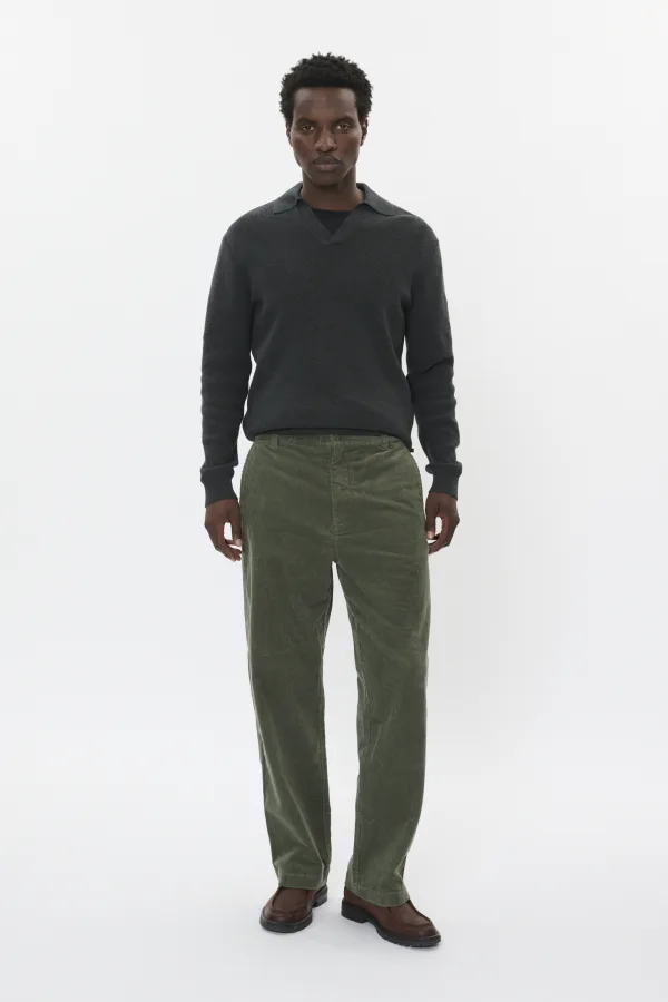 Corduroy broek met rechte pasvorm, nette tailleband en knoopsluiting. Met riemlussen en subtiele structuur voor een moderne uitstraling.