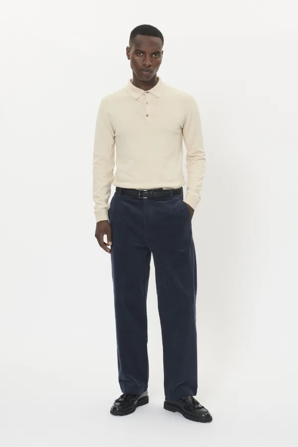 Corduroy broek met rechte pasvorm, nette tailleband en knoopsluiting. Met riemlussen en subtiele structuur voor een moderne uitstraling.