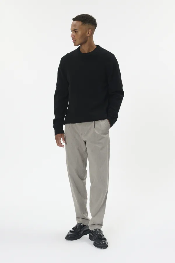 Nauwkeurige pantalon met een rechte pasvorm en zachte afwerking. Voorzien van plooien, zijzakken, riemlussen en een klassieke tailleband.