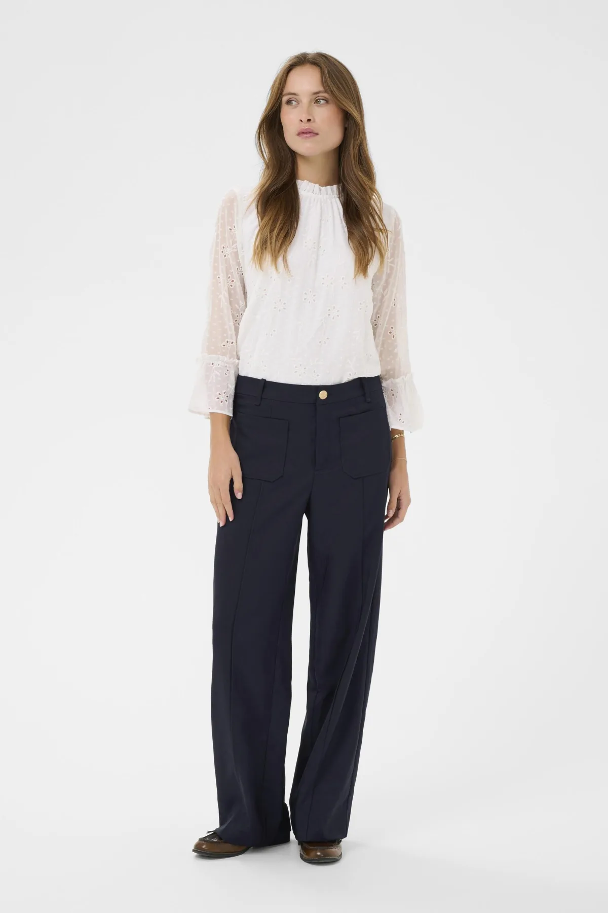 Damesbroeken met wijde pijpen bieden comfort en tijdloze elegantie. De hoge taille, opgestikte zakken en nette naden zorgen voor veelzijdige draagmogelijkheden.