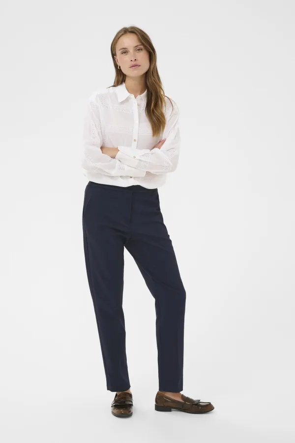 Damesbroek met slanke, enkellange pasvorm voor een moderne look en draagcomfort. Middelhoge taille en strakke afwerking geschikt voor werk en vrije tijd.