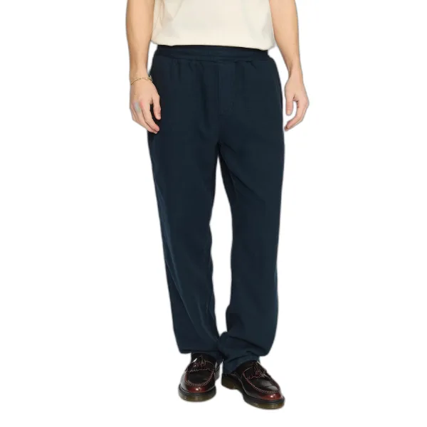 Een comfortabele versie van casual broeken - een perfecte match voor elke dagelijkse outfit. Deze instapbroeken zijn gemaakt in een iets ruime snit, van middelzware biologische katoen, met een kenmerkende ruwe structuur. De broeken zijn ontworpen met een elastische taille voor extra comfort, met een verborgen trekkoord voor aanpassingsmogelijkheden, en hebben schuin geplaatste zijzakken voor waardevolle spullen. Een enkele ronde zak met een merklabel "Revolution" voegt karakter toe aan de achterkant van de broeken. De pijpen zijn taps toelopend om de natuurlijke lijn van de benen te volgen, en de zoom kan worden omgevouwen voor een korte look.