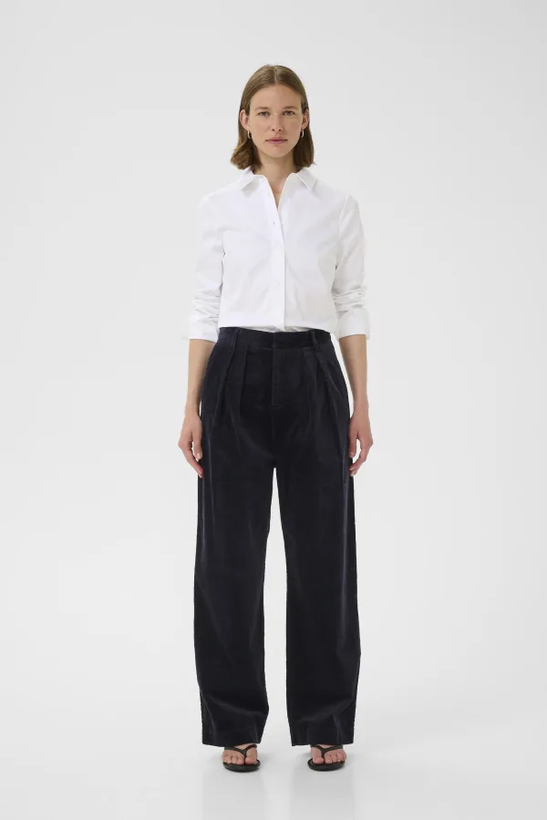Corduroy broek met relaxte, wijde pasvorm en klassieke tailleband. Voorzien van plooien voor en steekzakken, ideaal voor comfort en dagelijks gebruik.