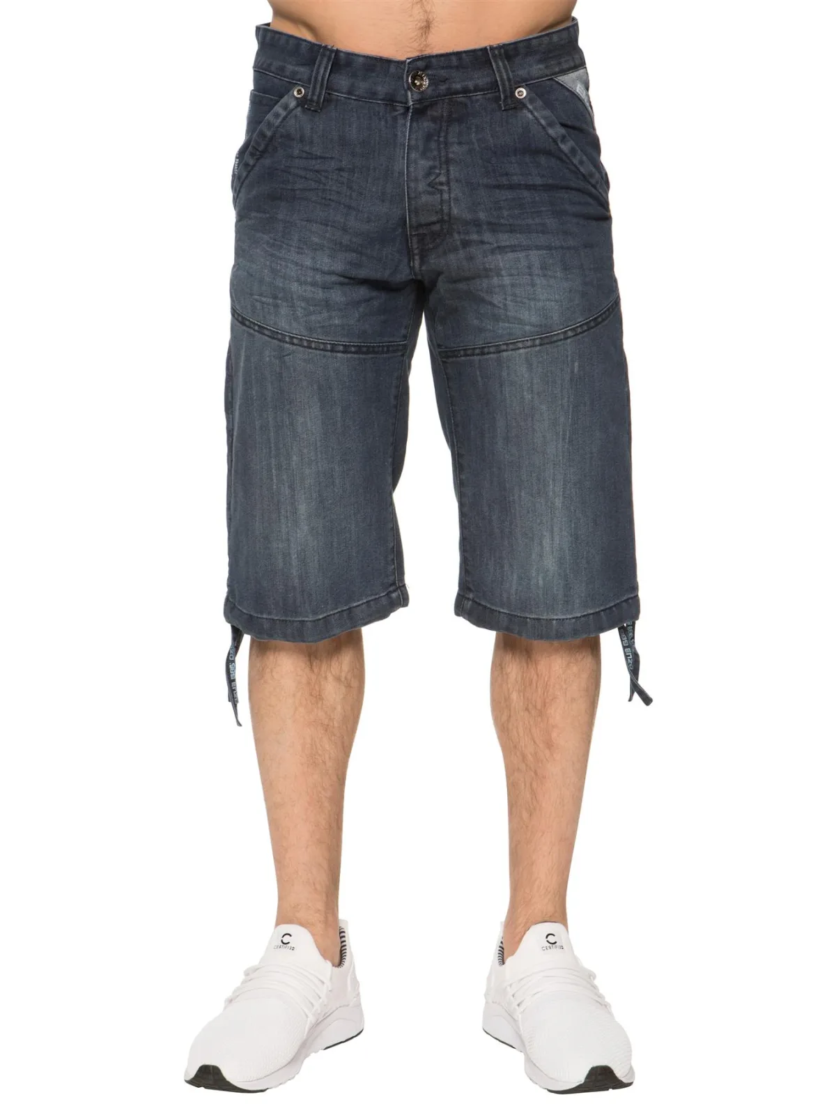 Enzo heren designer knielengte denim shorts in steen, 2 voorzakken, 2 achterzakken, knoopsluiting, 65% katoen, 35% polyester, machinewasbaar, ideaal voor informele gelegenheden.