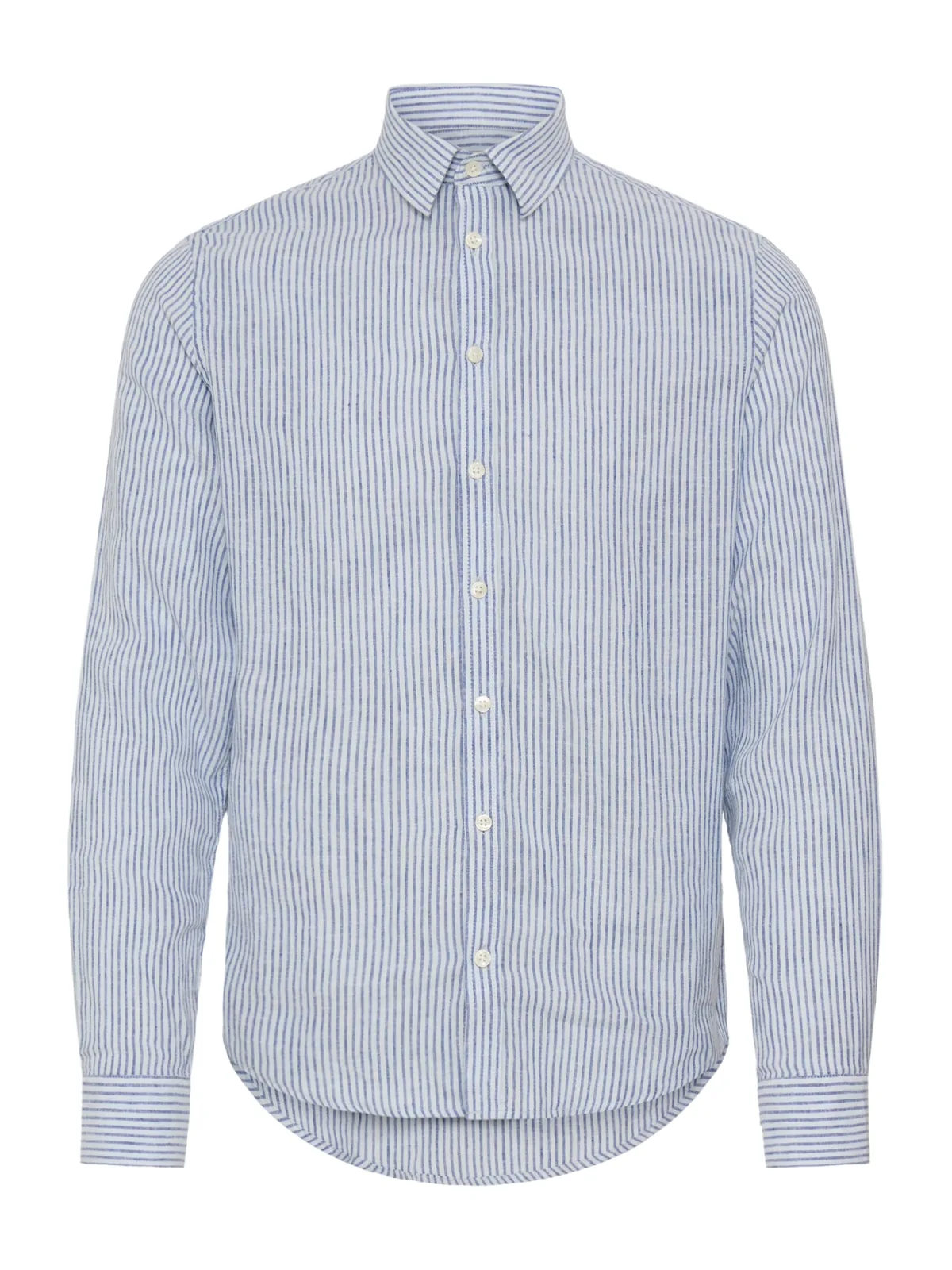 Design: 1-knoops manchetten, Gevoerde zoom/rand, Knop placket, Ronde zoom; Type sluiting: Knoopsluiting; Materiaal: Linnen; Motief: Gestreept; Kraag: Kentkraag; Extra's: All-over patroon, Lichte stof; Pasvorm: Regular fit; Armlengte: Lange mouw