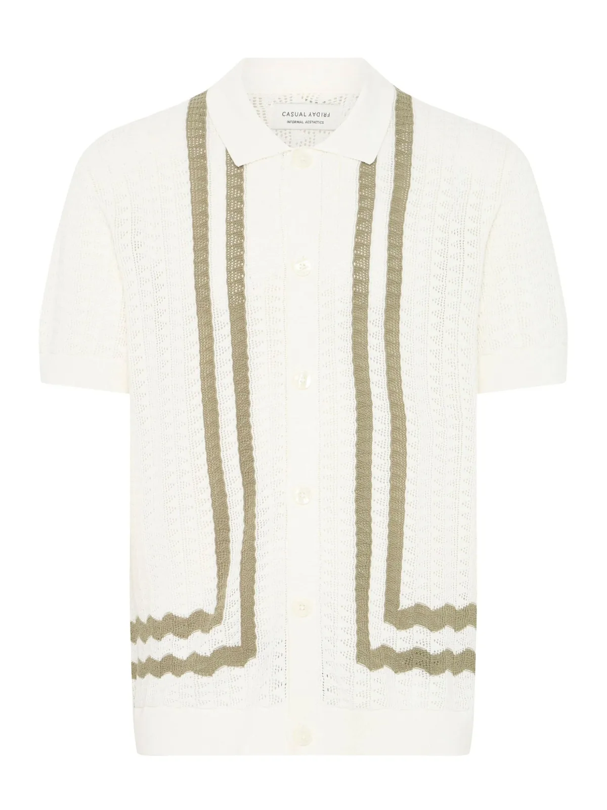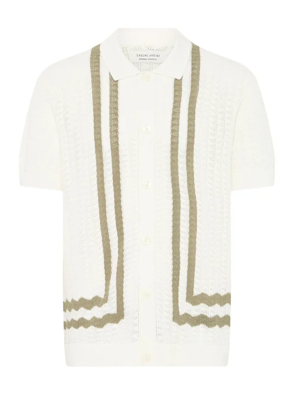 Design: Knop placket, Geribd ceintuurtje; Materiaal: Katoen; Kraag: Kentkraag; Extra's: Patroon gebreid; Pasvorm: Comfort fit; Armlengte: Kwartmouw
