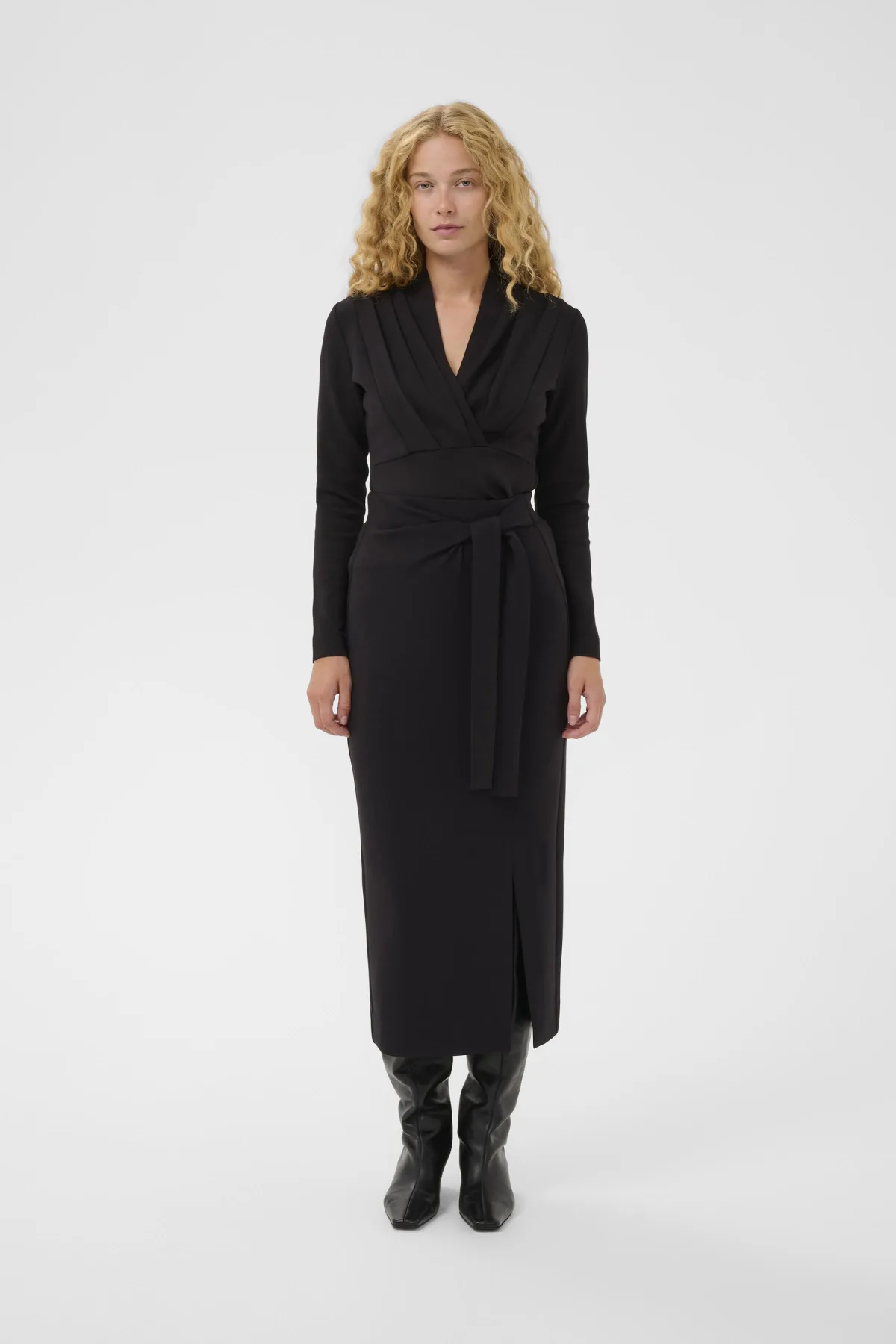 Deze midi-rok heeft een aansluitende pasvorm, hoge taille met vast strikdetail en een subtiele split vooraan voor extra bewegingsvrijheid.