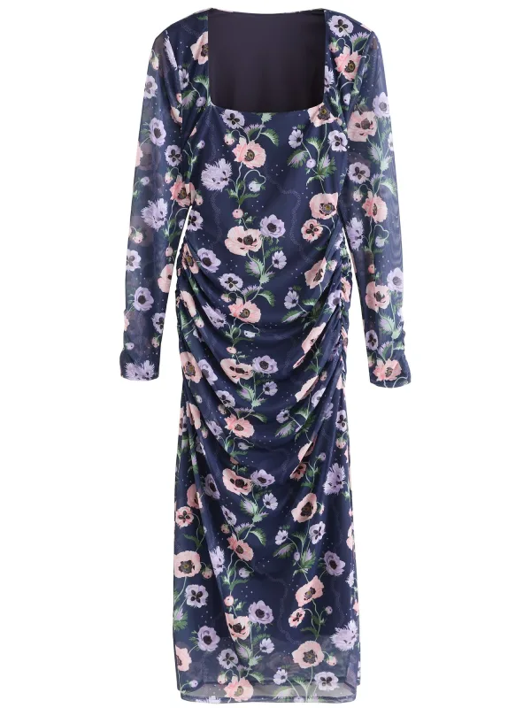 Design: Gevoerde zoom/rand, Rechte zoom; Materiaal: Gerecycled materiaal; Halstype: Carréhals; Motief: Bloemenprint; Details: Gedrapeerd; Extra's: All-over patroon, Buigzame grip; Lengte: 3/4 lengte; Snit: Figuur omarmend; Pasvorm: Slanke pasvorm; Armlengte: Lange mouw