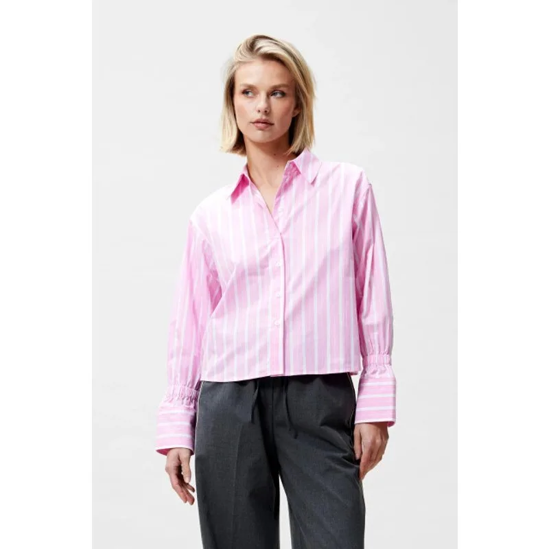 Gestreepte blouse met elastische manchet en een gekropter model.Kleur: rosebloom Materiaal: 100% katoen Het model is 176cm en draagt maat 36