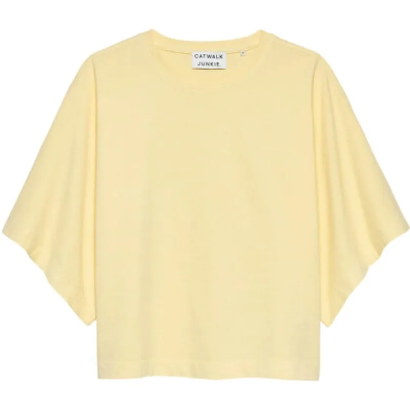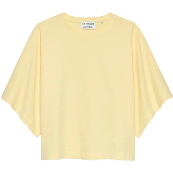 Losvallend T-shirt met vleermuismouwen en een ontspannen pasvorm. Kleur: Mellow Yellow Materiaal: 100% Katoen