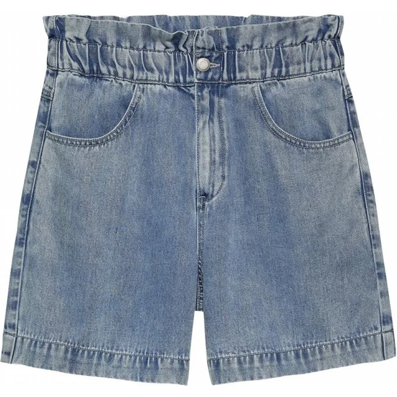Tencil denim shorts met elastische tailleband Normale pasvorm Iris is 1.76m lang en draagt maat 36 100% tencel Designed in Amsterdam