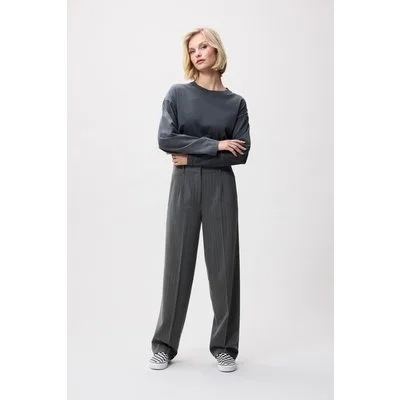 Catwalk Junkie Pinstripe Tapered Trousers Grey Melange Prijzen
