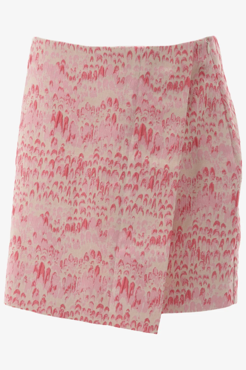kleur: rosefabrikant code: 2402014204materiaal: 66% polyester en 30% katoen en 4% elastaanpasvorm: loose fitsluiting: verborgen ritspatroon: fantasielengte: kort