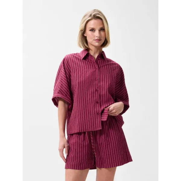 Blouse met korte mouwen en strepen voor een krachtige, coole look. Kleur: Berry Materiaal: 74% modal 20% polyamide 6% polyester Het model is 1.76m lang en draagt maat 36