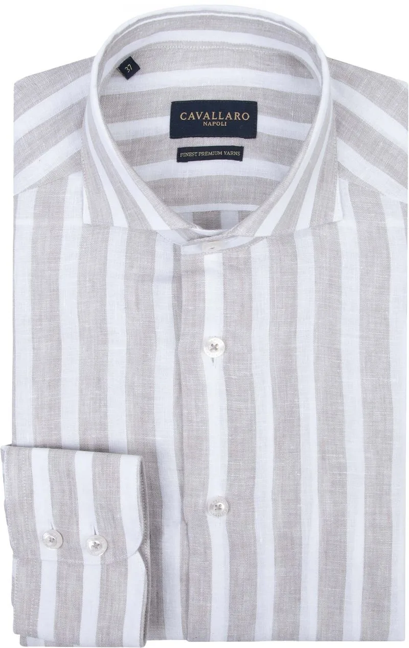 Cavallaro Trenso Overhemd Linnen Streep Beige