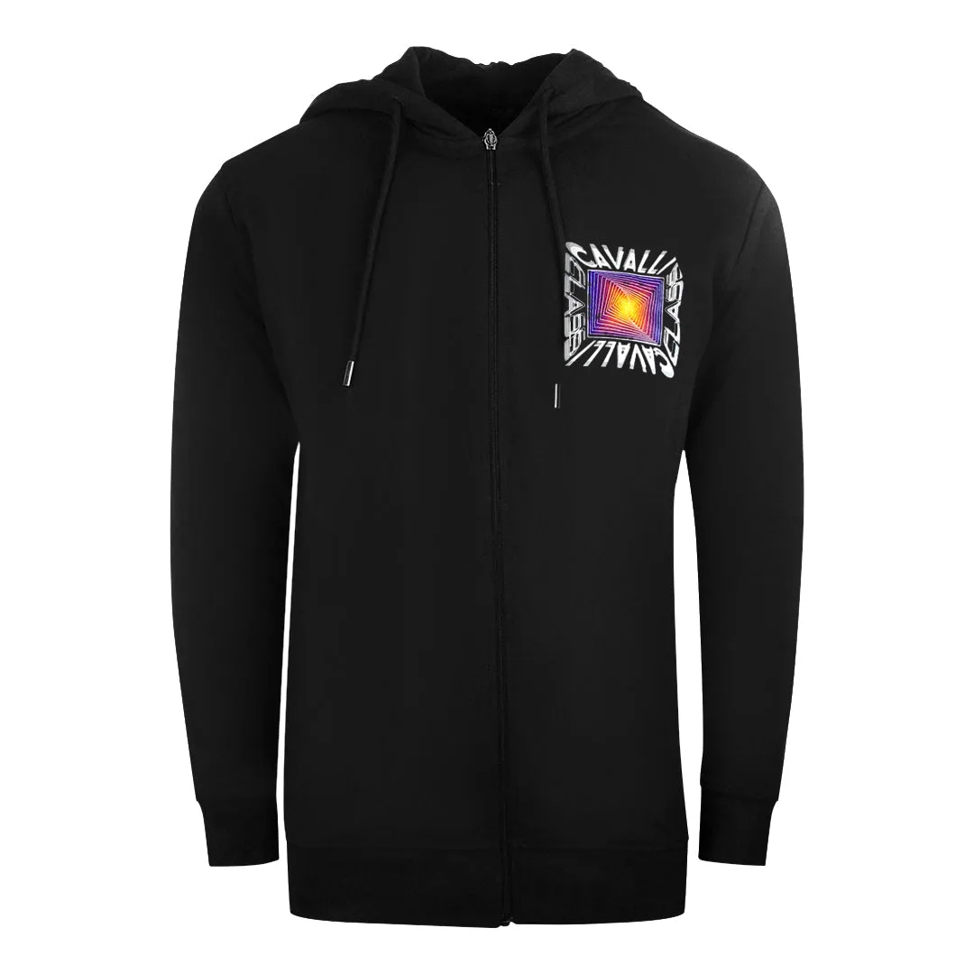 Cavalli Class Aysmmetric Box Design zwarte hoodie met rits