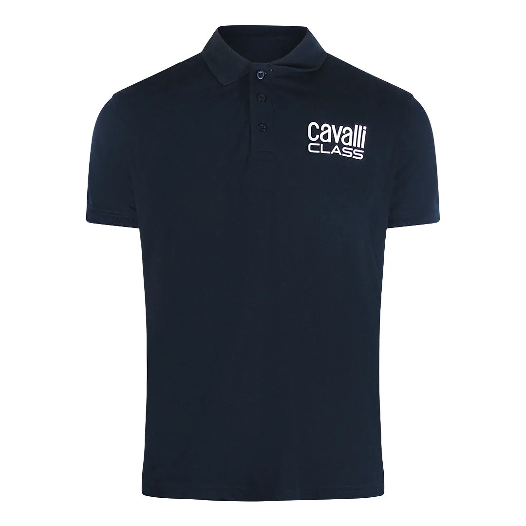 Cavalli Class Bold Logo Marineblauw Poloshirt