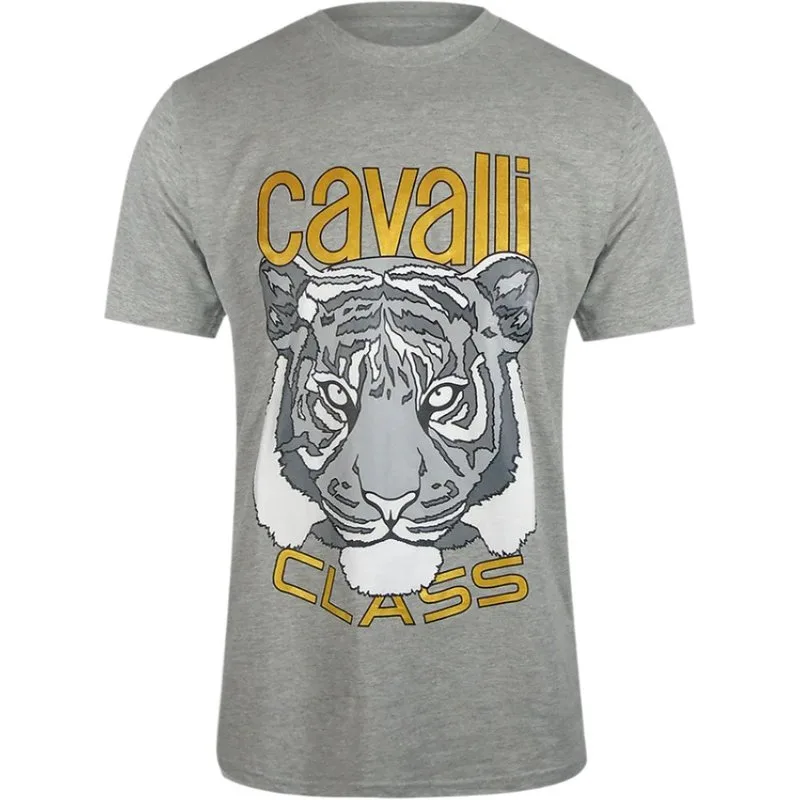 Cavalli Class Bold Tiger Graphic Grijs Melange T-shirt Prijzen