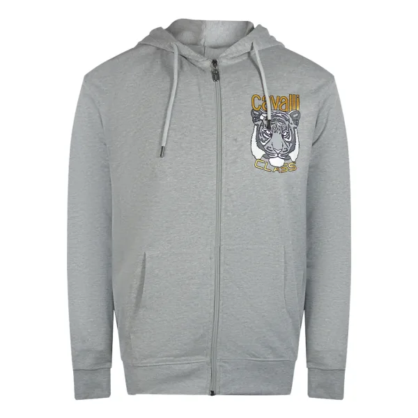 Cavalli Class Bold Tiger Graphic Logo Grijze Hoodie Met Ritssluiting