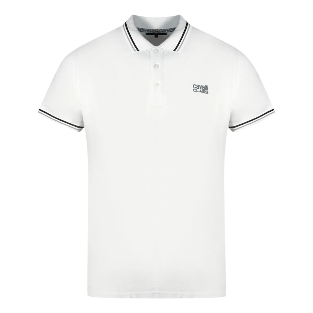 Cavalli Class Dubbel Tipped Kraag Grijs Logo Witte Polo Shirt
