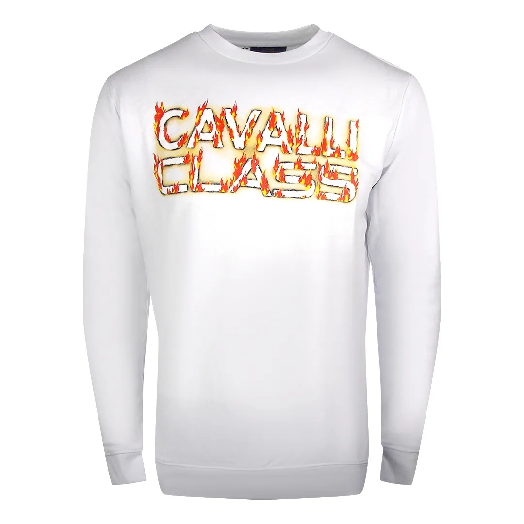 Cavalli Class Fire Logo Ontwerp Wit Sweatshirt