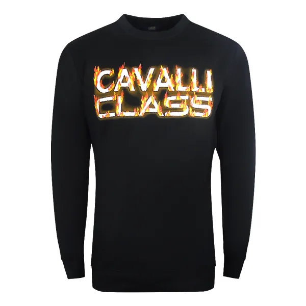 Cavalli Class Fire Logo Ontwerp Zwart Sweatshirt