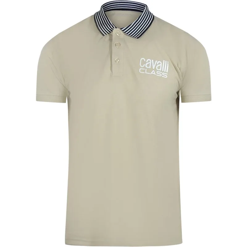 Cavalli Class Gestreepte Beige Poloshirt Met Kraag