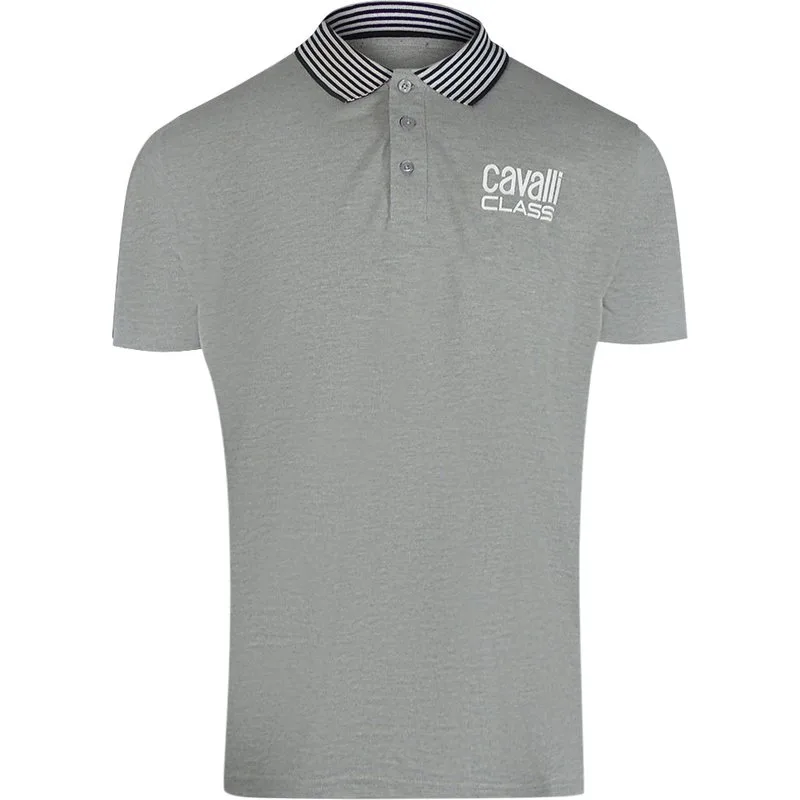 Cavalli Class Gestreepte Kraag Grijs Poloshirt