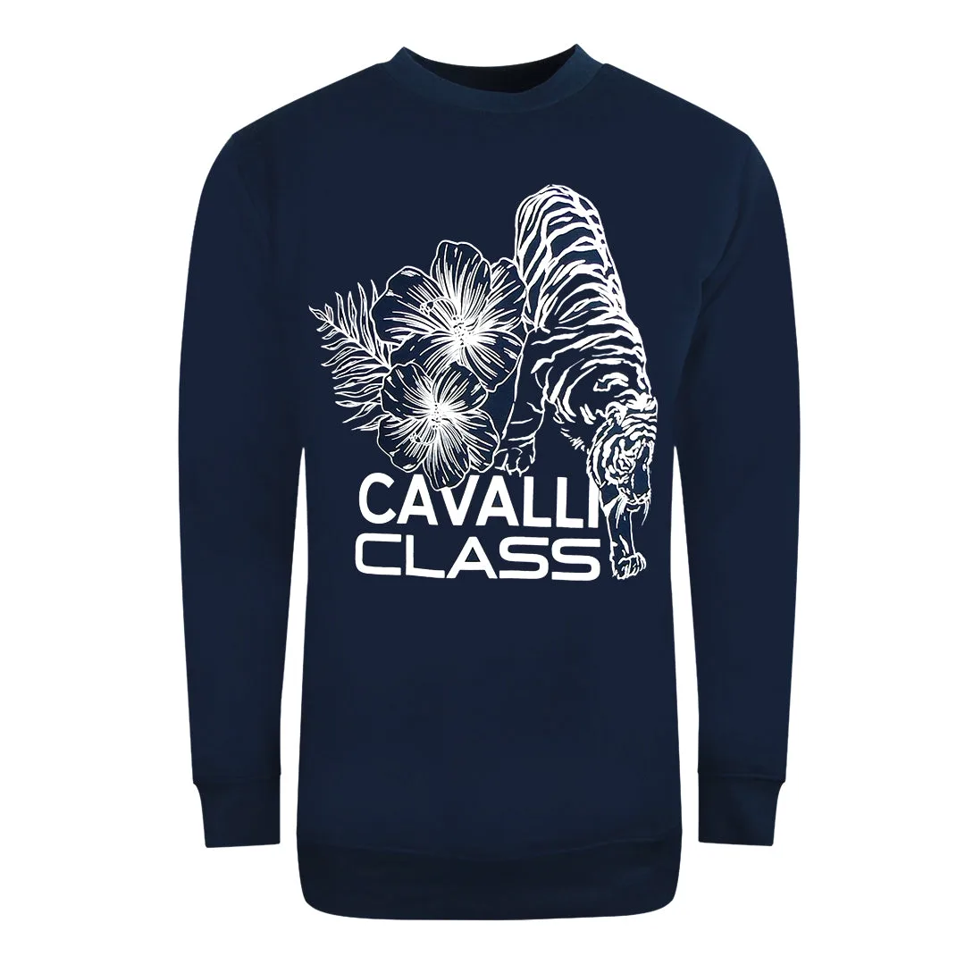 Cavalli Class groot marineblauw sweatshirt met tijgerontwerp